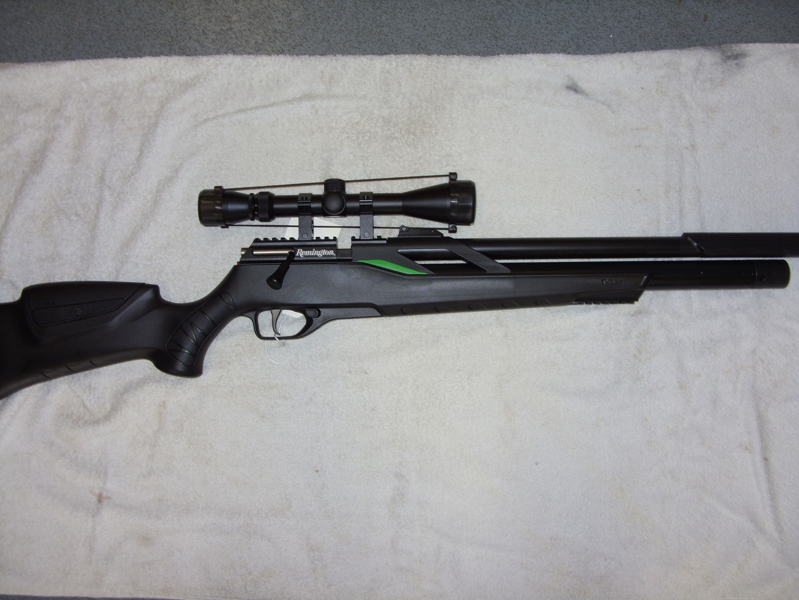 Remington T-Rex in 22 calibre comes with scope and built in silencer. Multishot PCP, easy loading, enlarged bolt knob for easy cocking.